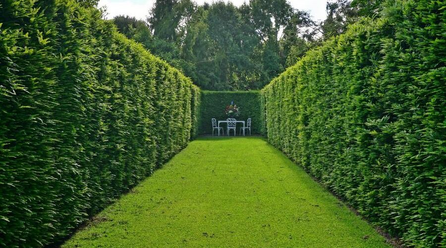 Seto de Podocarpus totara en Broadfield Garden, Nueva Zelanda La gran cantidad de lluvia que …