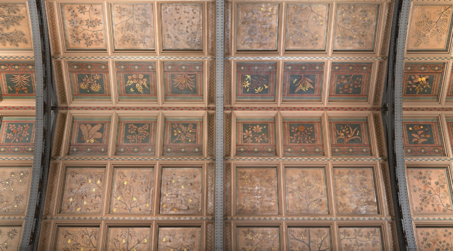 Paneles ilustrados en la bóveda de Hintze Hall •• © The Trustees of The Natural History Museum, …