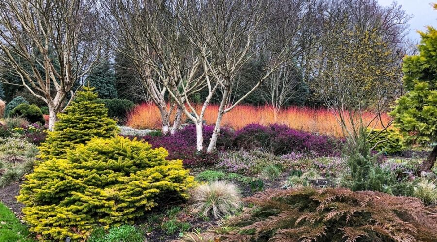 El color, contraste y acento vertical son algunas de las características que destacan en el jardín de invierno de Bressingham Gardens
