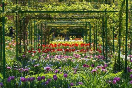 La primavera podemos celebrarlas con imágenes frescas frescas y flores frescas de el colorido jardín de Monet Clos Normand, en Giverny