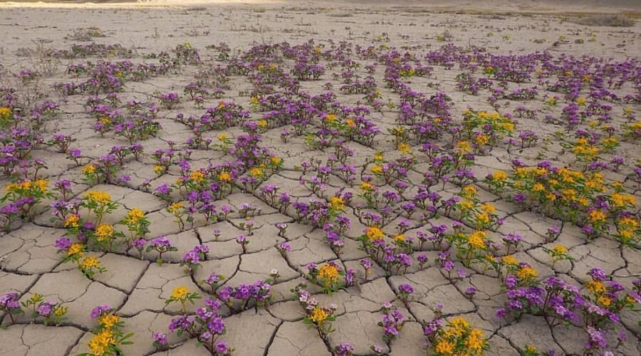 Hablar de flores en el Desierto de Marte, impresiona casi tanto como observarlas brotando de las grietas de desecación en el desierto de Utah
