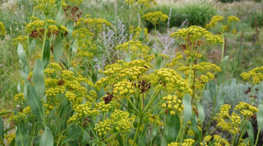 Bupleurum fruticosum, planta mediterránea que tolera la sequía estival y produce flores durante el verano