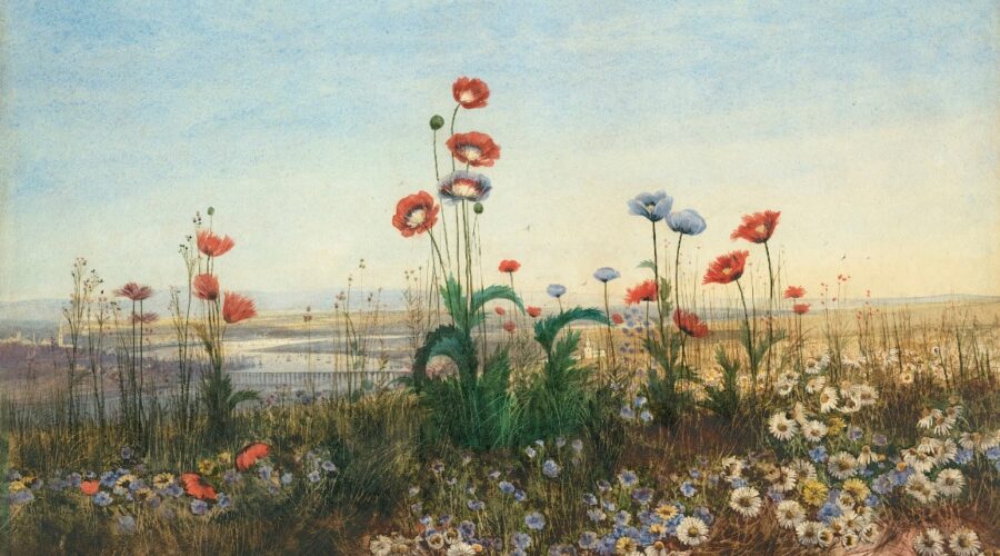 A distant view of Derry through a bank of wild flowers | Andrew Nicholl El …