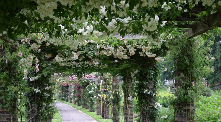 Rosedal y pérgola de rosas fragantes en Kew Gardens