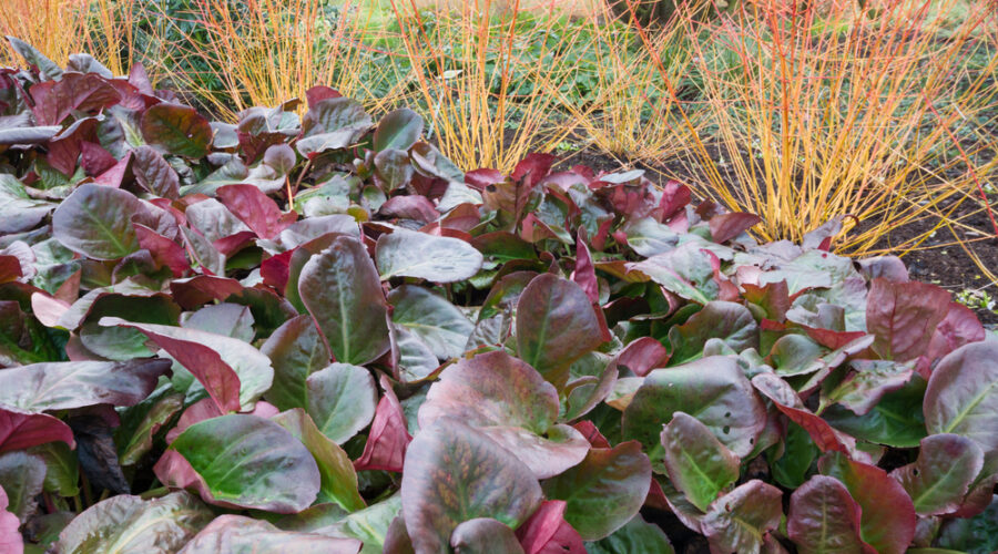 Bergenia, plantas tolerantes a la sequía con coloridas hojas en invierno (y flores en primavera)