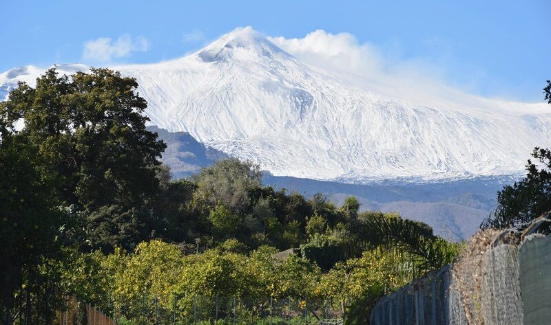 Hace unos días os dejé algunos jardines en invierno para desearos con ellos unas felices fiestas. Espero que así sea y que el comienzo del año esté resultando todo lo bueno que esperabais. Para comenzar el año 2018, quiero dejaros una pequeña muestra de las sensaciones vividas estos días junto al Etna, que domina la isla de Sicilia, en el Sur de Italia. Se encuentra en la costa oriental de Sicilia, en el territorio de la provincia de Catania, y está cruzado por el meridiano 15. Es, con sus 3.342 metros, el volcán activo más grande de Europa.