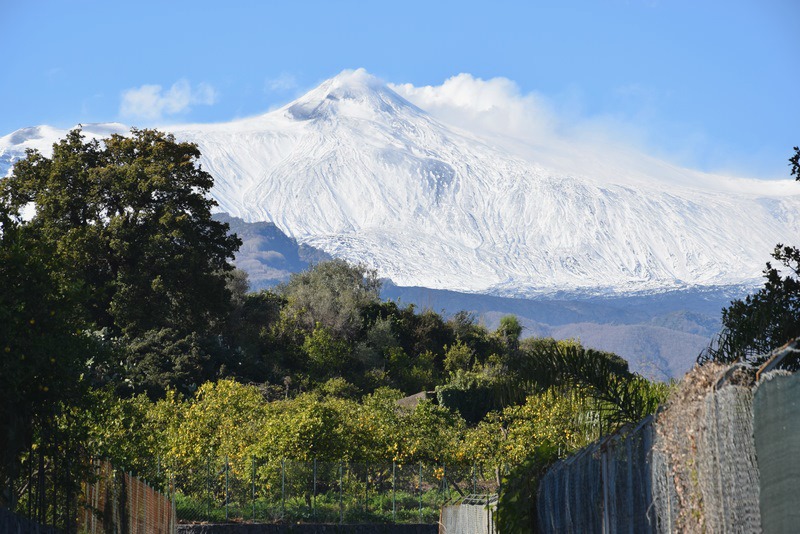 La nieve fue conquistando el terreno del volcán durante mi estancia, brindando imágenes que ayudaron a evocar un paisaje mucho más navideño. Es, sin duda, todo un privilegio estar junto al mar y, al girar la cabeza, observar y sentir la fuerza del volcán, un volcán que despierta cuando menos te lo esperas y que convierte a Sicilia en tierra de piedra lávica, ese rastro que han ido dejando las erupciones y que se aprecia en el suelo, los muros y hasta en los canalones de alguna vivienda.