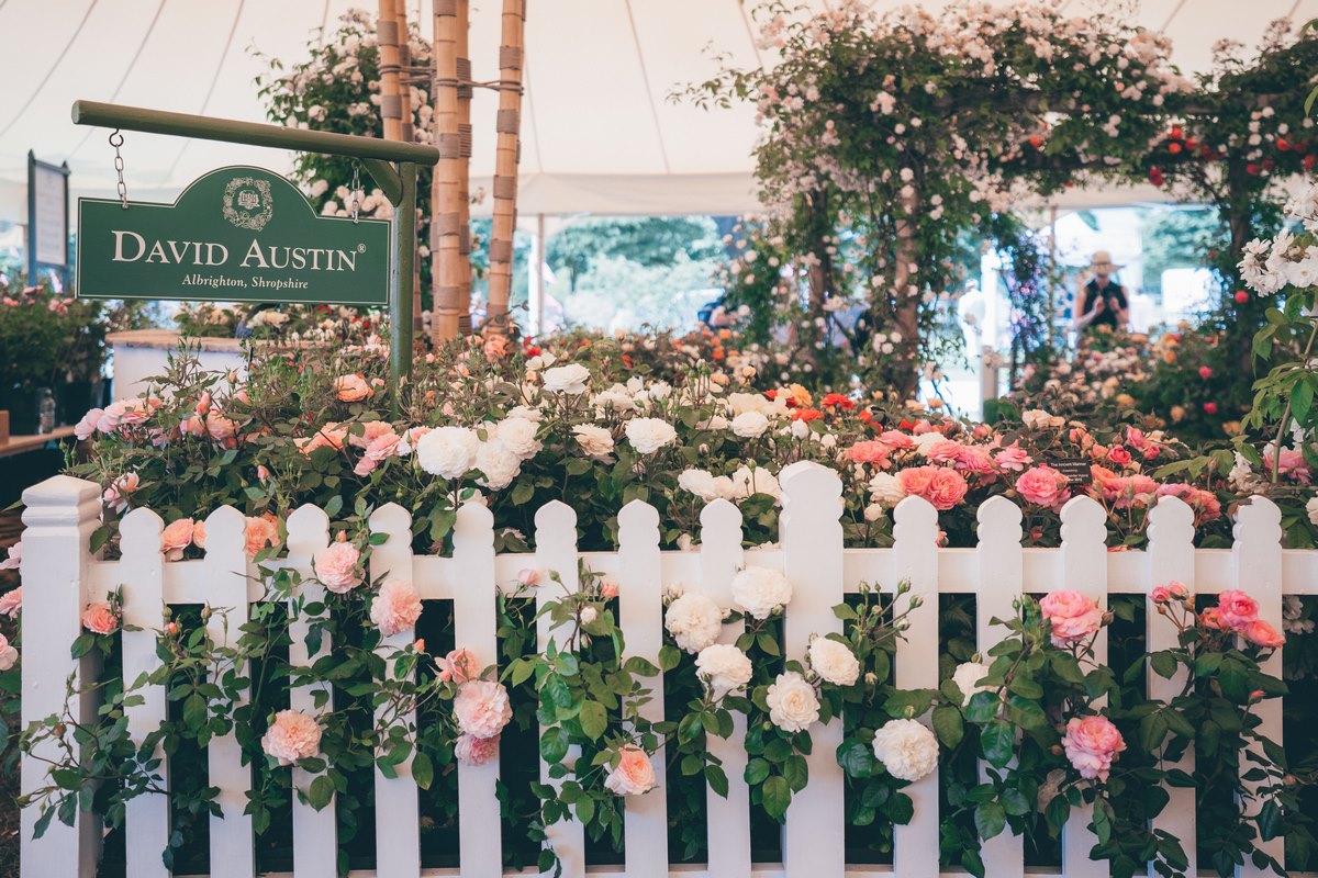 En la selección de rosas inglesas que se incluyen en este jardín de exhibición, tienen un papel destacado variedades como Emily Brontë, Olivia Rose Austin, Desdemona y Susan-Williams-Ellis; en forma de árbol, la Tranquility Standard Tree Rose y hasta Eustacia Vye y Gabriel Oak, las dos nuevas adiciones a la colección de rosas inglesas de David Austin.