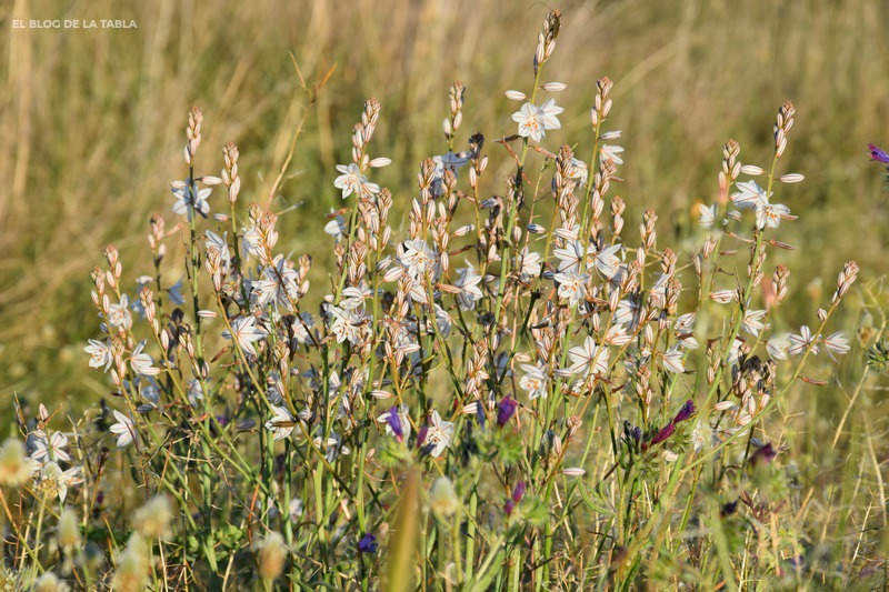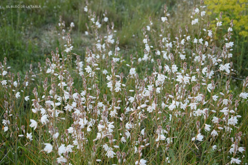 Y ahí están. Las flores blancas del gamoncillo (Asphodelus fistulosus) que bailan al sol de la tarde en un día de primavera, junto a las espigas del Plantago lagopus y algún que otro Echium vulgare. Son humildes silvestres que han nacido en el jardín porque les correspondía; flora espontánea de un mes de abril que llegó después de un invierno lluvioso. Así de sencillo. No se puede pedir más.