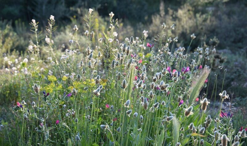Hay plantas especialmente atractivas al atardecer. La flora espontánea, silvestre, arvense, cualquiera que sea, impregnan el jardín de primavera. Son flores que dejamos crecer en algunos rincones para que sea la naturaleza la que se encargue de agrupar especies.