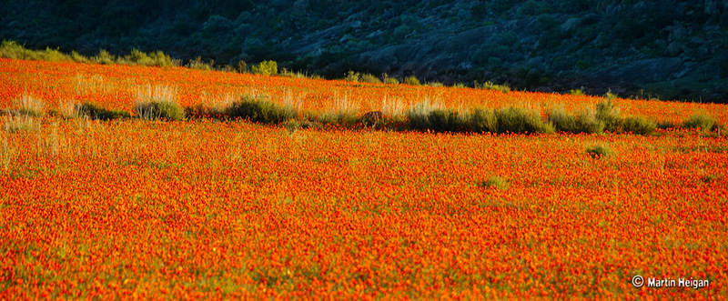 En total, son más de tres mil especies silvestres las que se han registrado en la región, muchas de ellas endémicas. Desde el mes de agosto hasta octubre Dimorhotheca sinuata, Grielum humisufum o Drosanthemum floribundum, por ejemplo, crean alfombras de color naranja, amarillo y púrpura, que van transformándose a medida que el día avanza y las flores se abren por completo.
