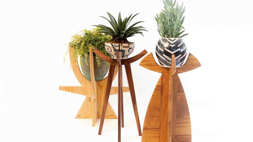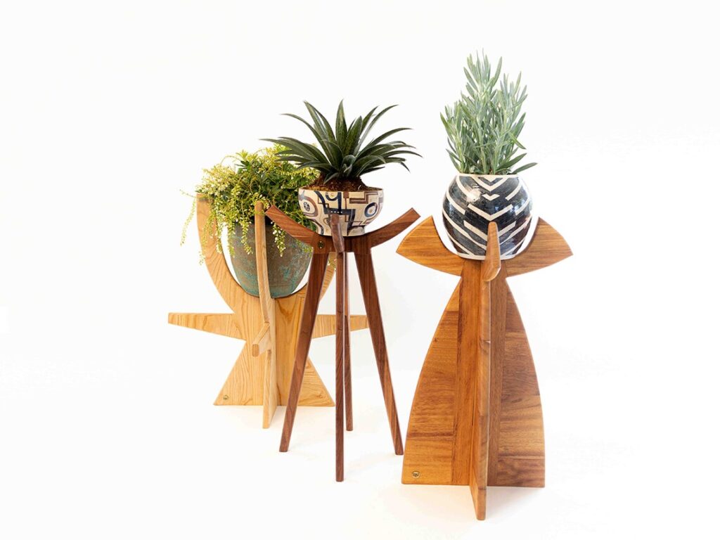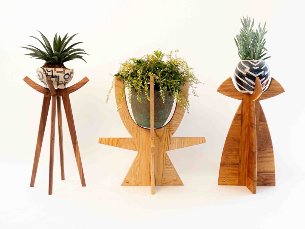 Soportes para plantas hechos en madera maciza con diseño años 50