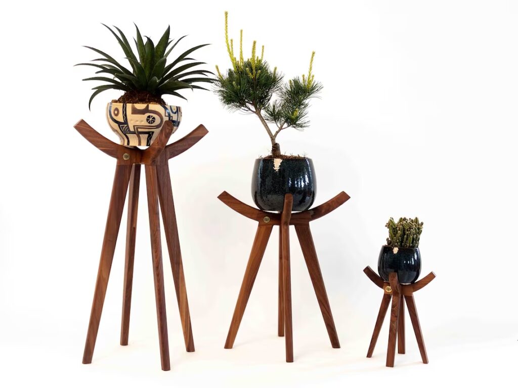 Soportes para plantas estilo años 50 hechos a mano en madera maciza