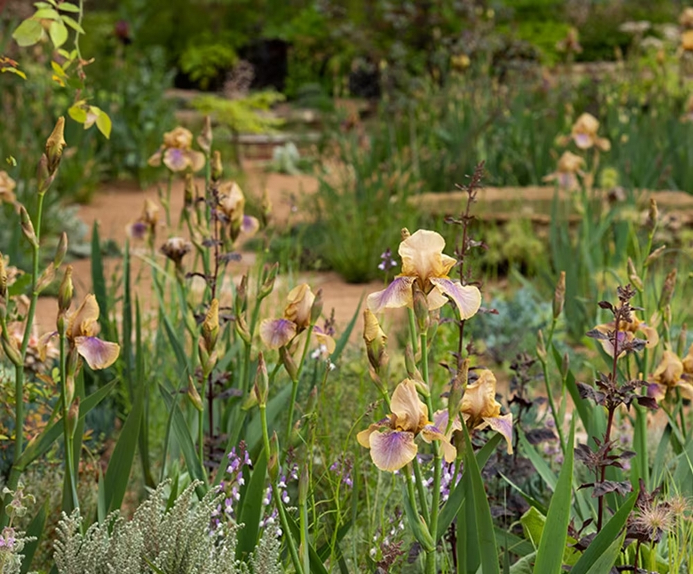 Creado con espíritu artesano, en el jardín de Sarah Price en Chelsea Flower Show 2023 la sostenibilidad se traduce en un espacio mágico donde los materiales naturales reutilizados armonizan con una delicada plantación de aire silvestre, salpicada con algunos de los iris Benton criados por el artista y horticultor británico Cedric Morris, cuyo jardín en Benton End ha inspirado a la diseñadora británica.