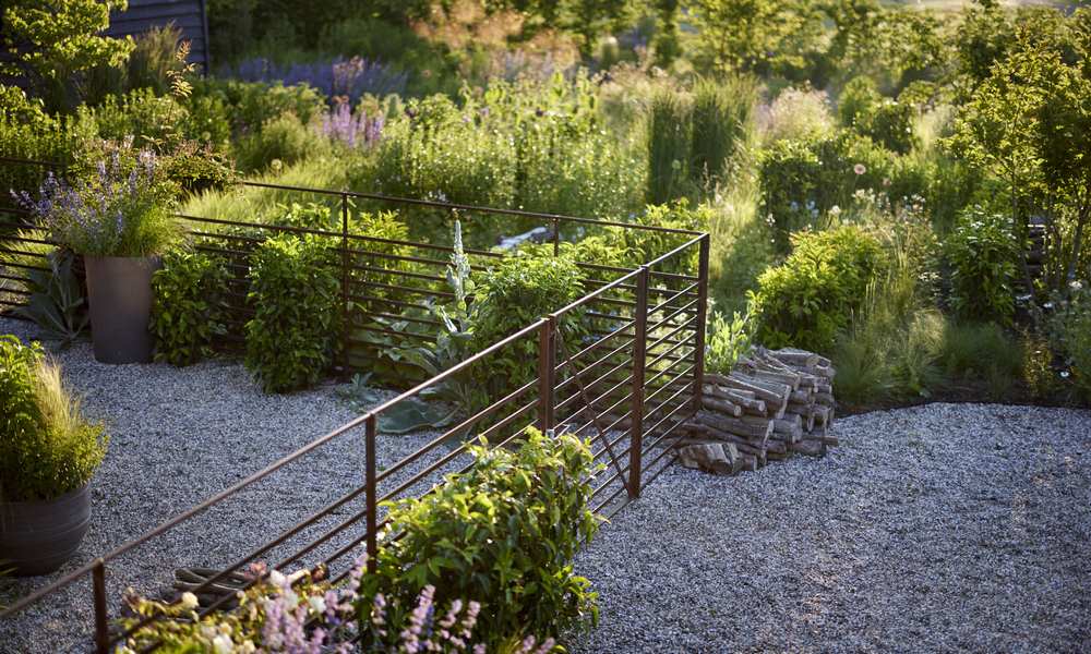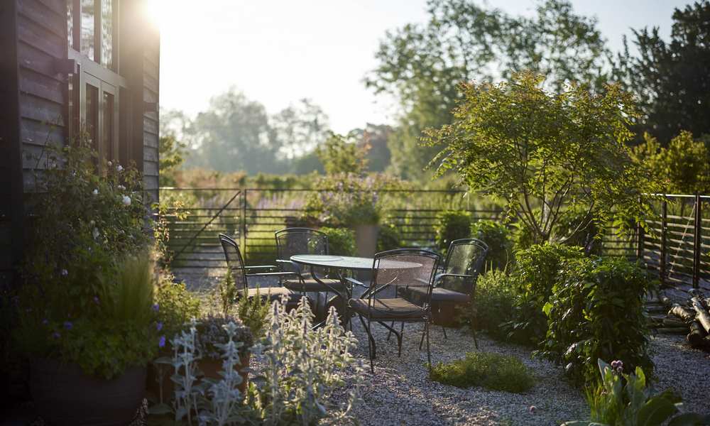Todo el sitio está atravesado por caminos de grava serpenteantes que conducen a tres áreas: una creada para tomar el sol, otra centrada en la hoguera y otra en un lugar soleado concebido para disfrutar de un café por la mañana.