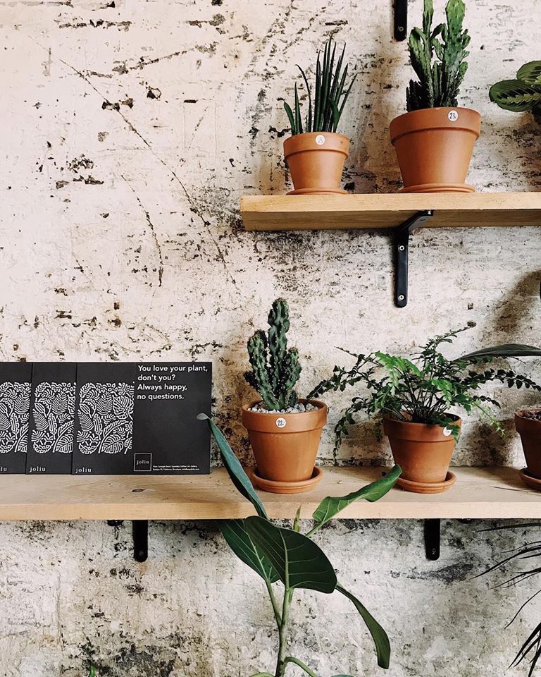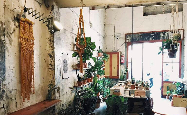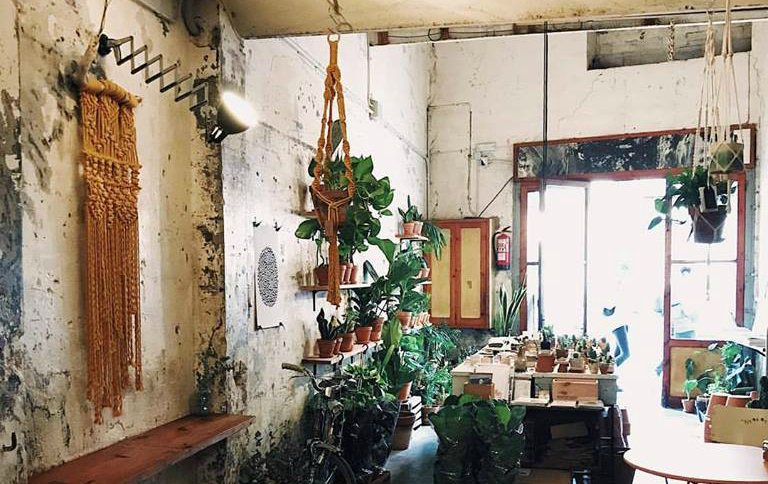 Espai Joliu es una especie de invernadero urbano, con muebles de madera natural y paredes blancas sin tratar. Allí puedes tomarte un café o almorzar; asistir a algún taller o comprar alguna maceta, vacía o con su correspondiente planta. Puedes, incluso, celebrar de forma íntima y acogedora cualquier evento, incluso tu propia boda. En ocasiones, son ellos quienes se desplazan para acudir a algún tipo de feria, siempre acompañados de las plantas.