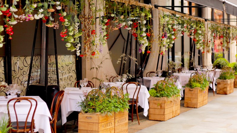 El ejemplo que comparto hoy corresponde a la terraza de un restaurante ubicado en el prestigioso (y comercial) barrio de Mayfair en Londres. El diseño de esa terraza, realizado por el diseñador de jardines Marcus Barnett, corresponde a los actos que suelen acompañar a la celebración del festival de flores y jardines, organizado cada año en el mes de mayo por la Royal Horticultural Society (RHS), Chelsea Flower Show, concretamente en la edición del año 2015. Precisamente en esa misma edición del festival Marcus Barnett diseñó el jardín de exhibición patrocinado por The Telegraph, por el que obtuvo una medalla de oro.