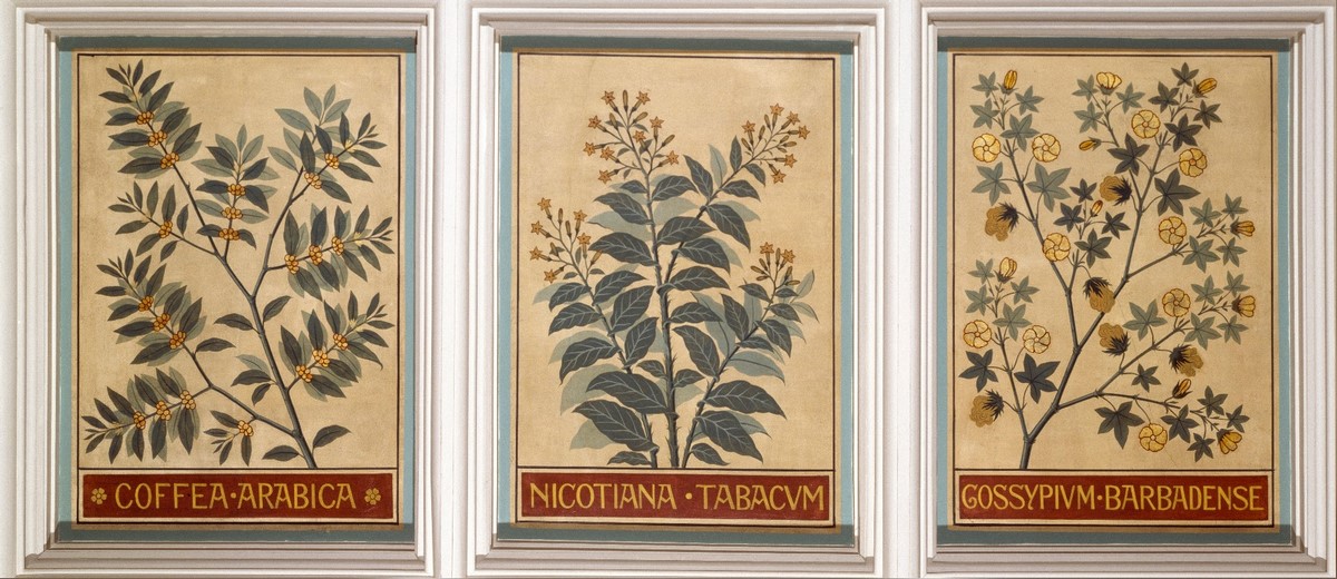 | Ilustraciones botánicas (plantas de café, tabaco y algodón) en la bóveda de Hintze Hall •• © The Trustees of The Natural History Museum |