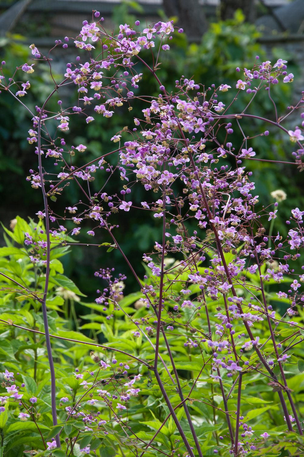 Una variedad alta con follaje de encaje y tallos verticales, casi negros, que llevan generosos rociados de flores de color púrpura violáceo brillante a mediados y finales del verano. Altura: 2m.