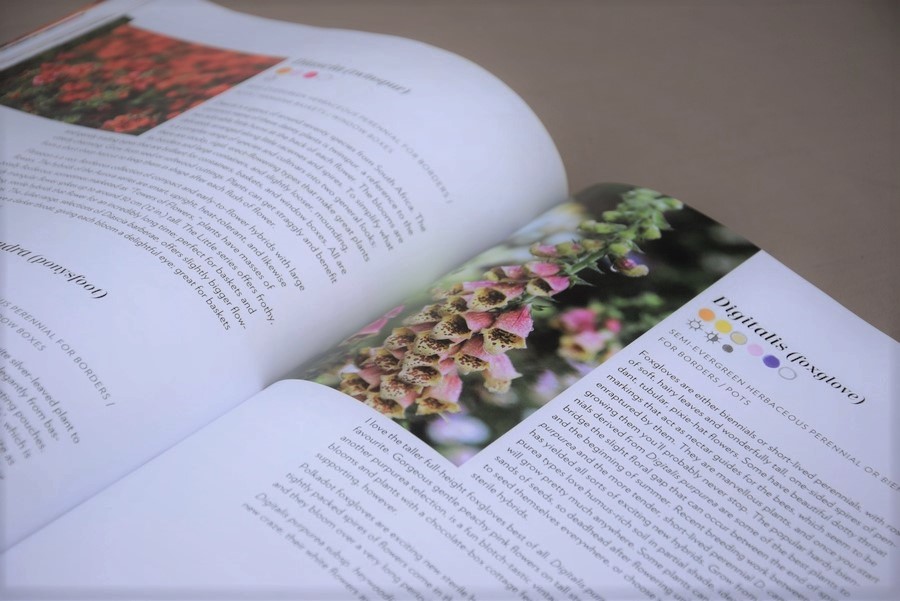 El apartado final es una floripedia que incluye fotografías de 50 plantas con datos básicos sobre su cultivo, conceptos de siembra, riego, necesidades de suelo y cultivo en contenedores.