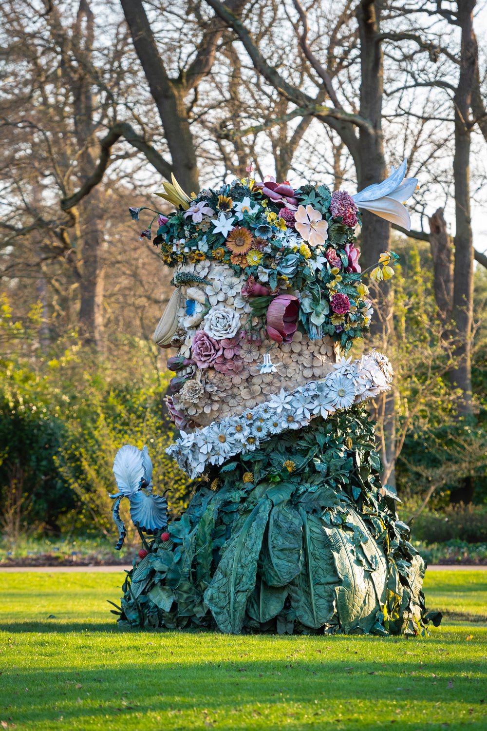 Piezas con casi 5 metros de altura y figuras que son interpretaciones en 3D de las pinturas del artista italiano del siglo XVI Giuseppe Arcimboldo, sus célebres «cabezas compuestas» a partir de flores, frutas, plantas, animales y otros objetos.