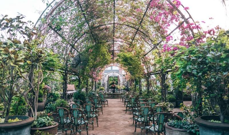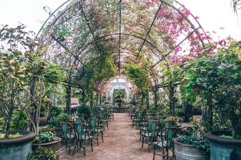 Hoy os propongo pasar un buen rato en alguno de los espacios que ofrecen en The Grounds of Alexandria, como el llamado Potting Shed, que han convertido en un lugar para reunirse, comer, beber, relajarse y conversar, donde abundan las plantas colgantes y las macetas de terracota. Pero también se pueden realizar celebraciones en llamado Atrium, un espacio romántico envuelto en zonas verdes, de inspiración parisina. Cuando se quieren celebraciones intimas al aire libre, ofrecen el Patio, enclavado entre las enredaderas y plantas en flor y rodeado de paredes de arbustos y vegetación. La sorpresa viene de la mano del Lock-In, que se encuentra oculto detrás de una gran puerta.
