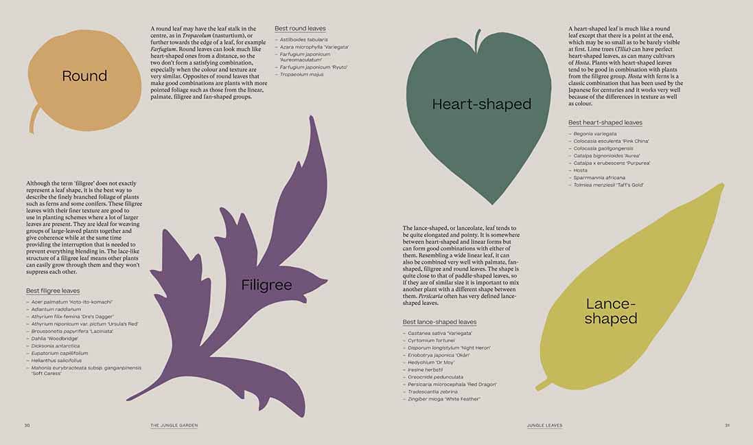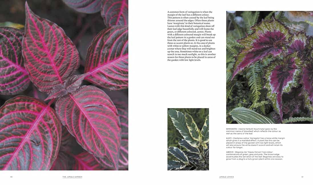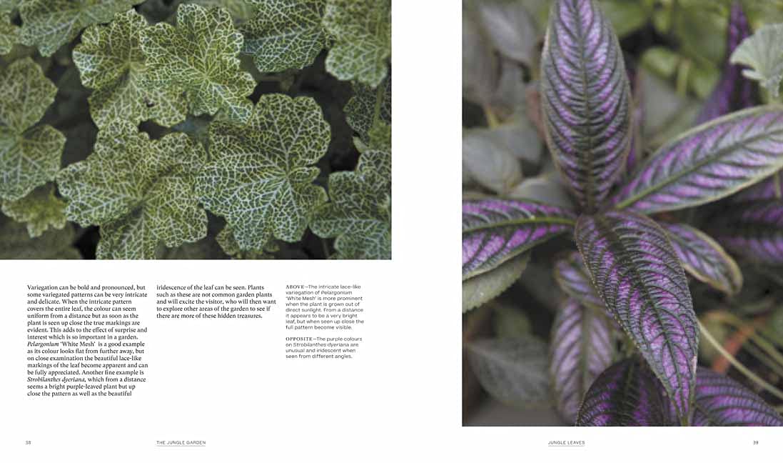 El contenido del libro se ha estructurado en cinco capítulos. Después de la introducción, el autor dedica un capítulo a las hojas, sus estructura, variegación, color, diferentes estilos y sugerencias de combinación. El siguiente capítulo nos conduce a los diversos espacios (soleados y más o menos sombreados) para indicarnos qué plantas son más adecuadas para cada uno de ellos. A continuación, hay un capítulo en el que se muestra una selección de 8 jardines dignos de admiración que ofrecen sugerentes ideas de diseño y plantación. El siguiente capítulo lo destina a todos los consejos que se refieren al cultivo, desde la preparación del suelo hasta la forma de proteger las plantas durante el invierno.