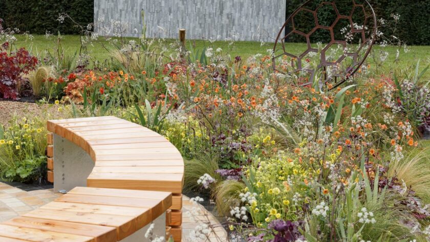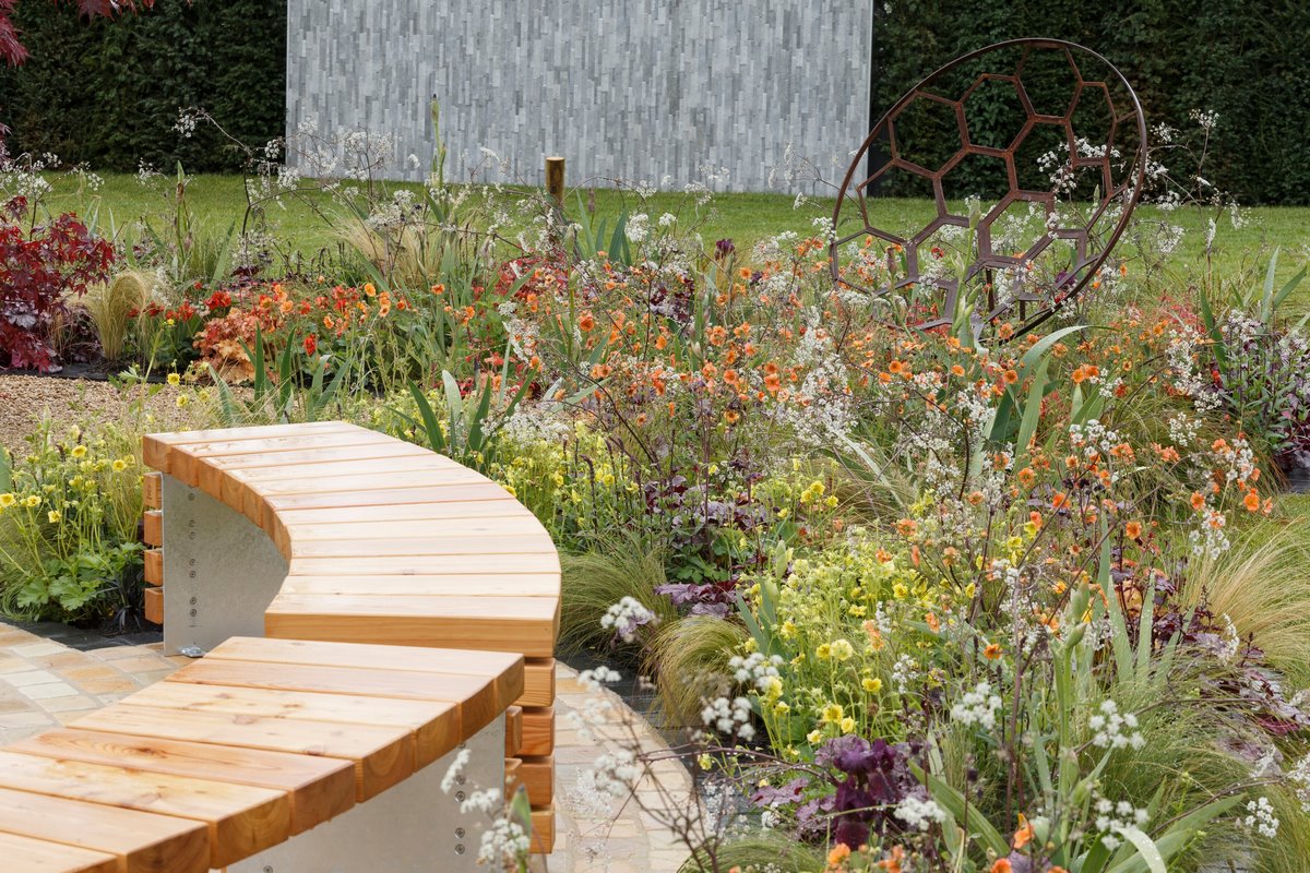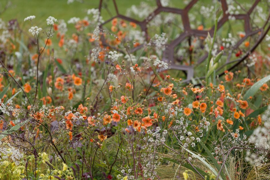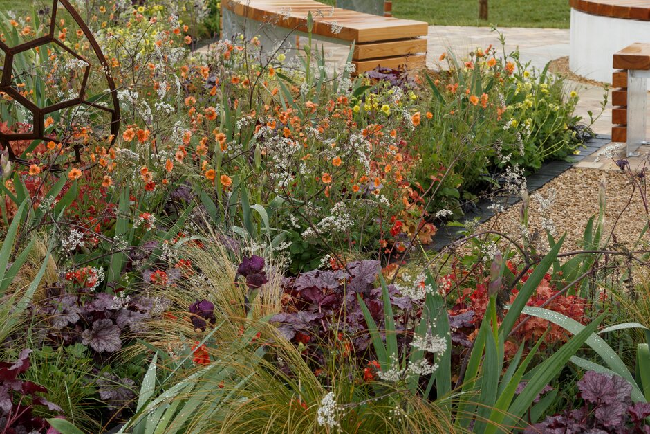 Así es, un pequeño jardín, aparentemente sencillo, pero lleno de saber. Me refiero a «The Redshift»(desplazamiento hacia el rojo), el jardín de exhibición que Julie Bellingham ha presentado en RHS Malvern Spring Festival, por el que ha obtenido una medalla de plata. No es el mejor galardón que se puede recibir en este tipo de festivales, pero eso no resta interés en conocer qué concepto hay detrás de su diseño y el por qué del esquema de plantación.