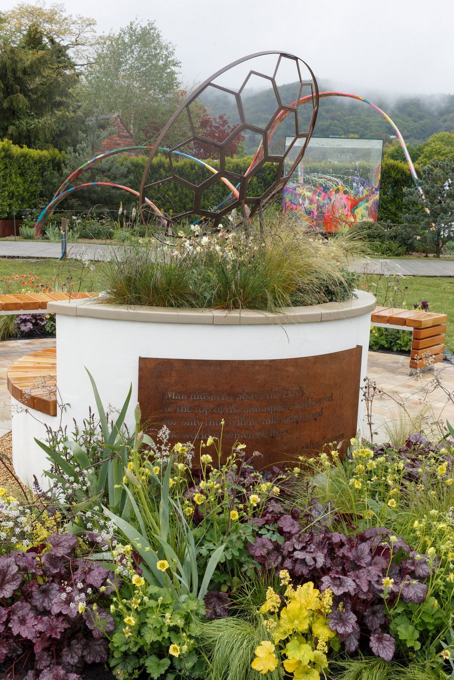 Este jardín de exhibición instalado en Malvern Spring Festival sigue las pautas de su estilo de jardines. En él, la diseñadora celebra la forma en que los telescopios nos han ayudado a desarrollar una comprensión de nuestro universo.