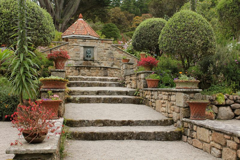 Augustus Smith creó grandes rompevientos alrededor del jardín. Canalizó la climatología a base de recintos amurallados y terrazas talladas en las laderas rocosas orientadas a sur. En la parte superior del jardín, las terrazas más calientes ayudan a adaptarse a las plantas sudafricanas y australianas; las terrazas más bajas proporcionan la humedad que favorece a la flora de Nueva Zelanda y América del Sur.