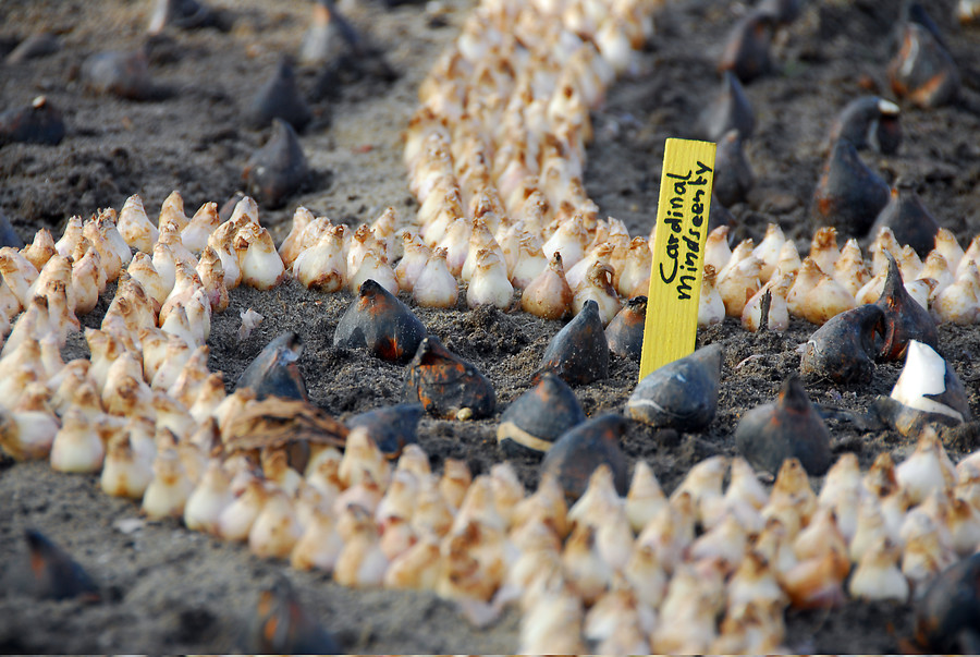 Es importante asegurarnos de que la maceta sea lo suficientemente grande; como mínimo seis veces más alto que el bulbo. Es decir, el bulbo debe tener encima y debajo una capa de tres bulbos de alto. También debemos asegurarnos de que la maceta tenga un agujero en la base para que pueda drenarse el exceso de agua.