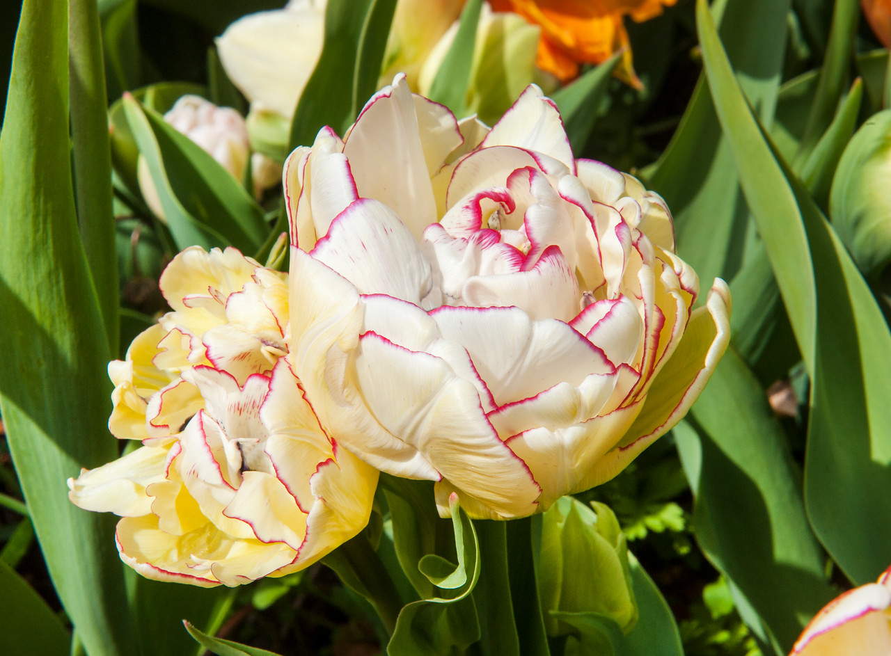 Los tulipanes dobles de floración tempranaasoman sus primeras flores en abril, y continúan floreciendo hasta mayo. Sus tallos son cortos y fuertes, lo que se traduce en un menor riesgo de que se quiebren por la lluvia o el viento.