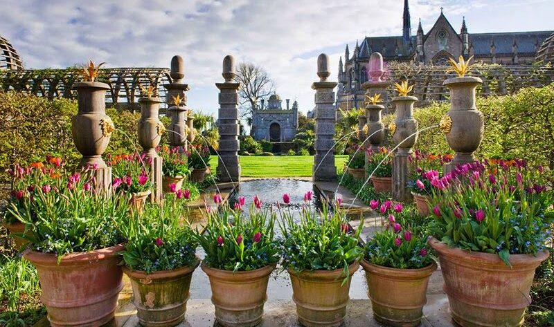 Los tulipanes están por todos los rincones de los jardines de Arundel Castle, pero destacan especialmente los que se encuentran en la zona de plantas de colección, Collector Earl’s Garden. Allí brillan 2.500 tulipanes en tonos rosa, ciruela o púrpura; colores aterciopelados y vivos. Caen desde grandes macetones colocados en las terrazas superiores, formando un auténtico espectáculo. Los propietarios de este castillo, los duques de Norfolk, encargaron a Julian e Isabel Bannerman crear el Collector Earl’s Garden y ellos no escatimaron en exuberancia, fantasía, fiesta. Un jardín donde no faltan plantas como cannas, fatsias, plátanos, astelias y árboles helechos plateados.
