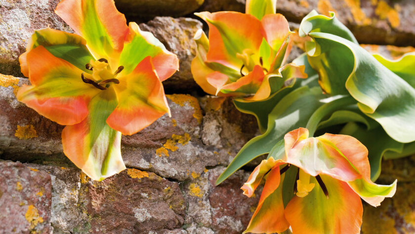 Una maravilla, también, el color dorado intenso o anaranjado, con un delicado resplandor verde, de Tulipa ‘Artista’.