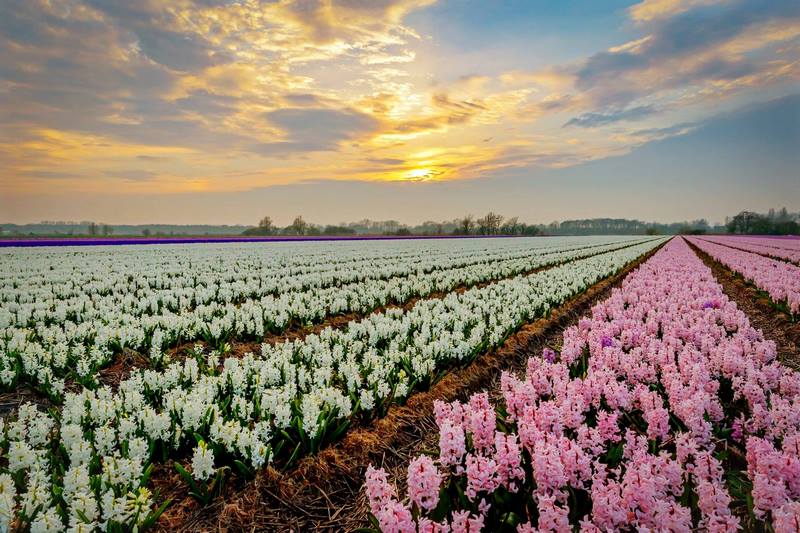 Sin embargo, a cambio nos regalan, como cada temporada, coloridas alfombras y ríos de flores, que ya apuntaban maneras en Keukenhof el día que se abrió al público, el pasado 22 de marzo. A medida que pasaban los días y subía la temperatura, el parque se ha iba tiñendo de amarillo gracias a las flores de los narcisos. A continuación, los tonos rojo, naranja, rosa y azul de los tulipanes y jacintos se iban haciendo cada vez más presentes, como lo han hecho los coloridos campos de cultivo alrededor de Keukenhof.