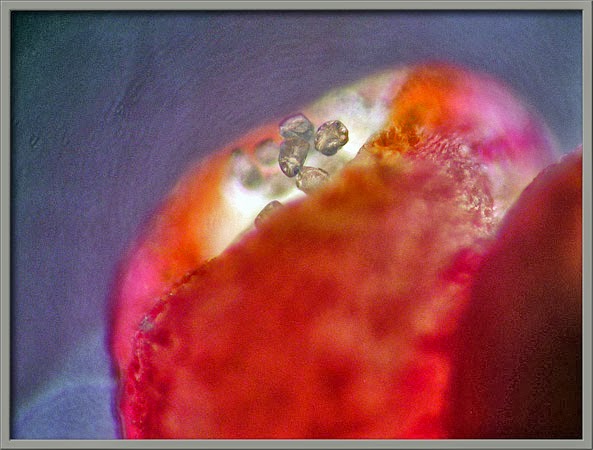 En su fantástico trabajo, Brian Johnston va acercando la cámara para mostrar la estructura molecular de las flores y de sus inflorescencias, deteniéndose en algunas secciones. Son micro-fotografías que, junto a las maravillosas macro-fotografías iniciales, muestran progresivamente los detalles de cada una de esas flores, como si las fuéramos desgranando para observarlas a través del microscopio.