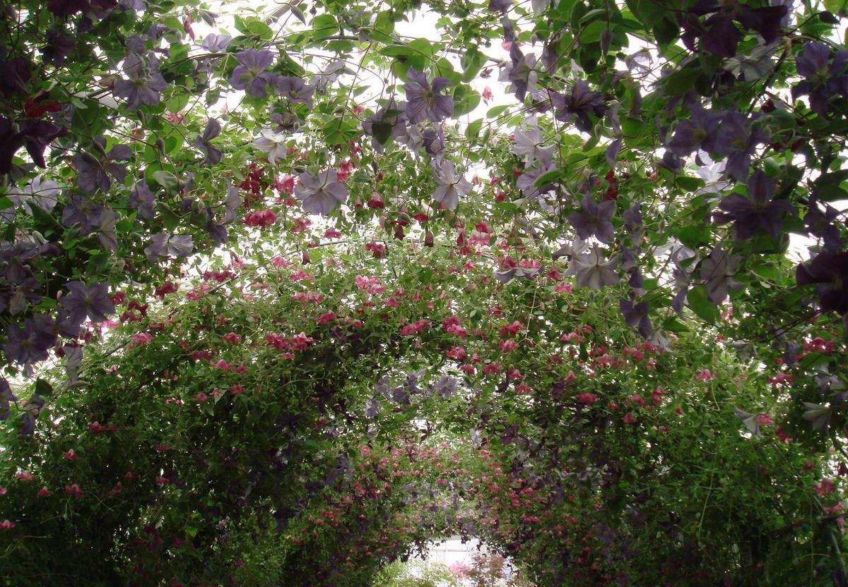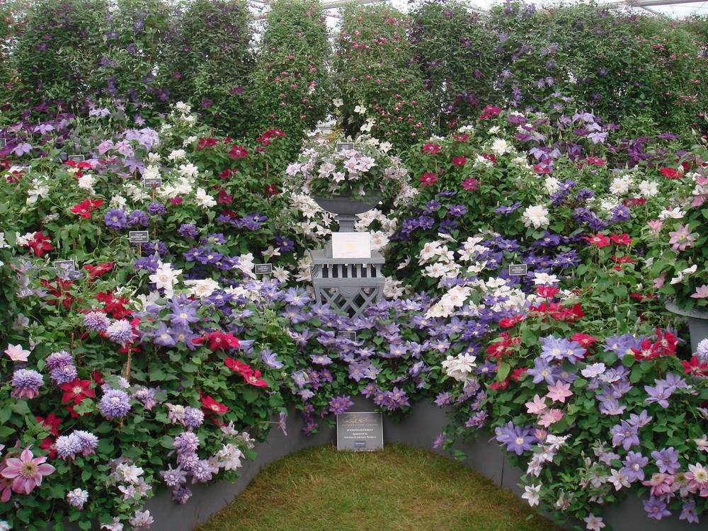 Arco de flores de clemátides (Clematis) en RHS Chelsea Flower Show | Guernsey Clematis Nursery