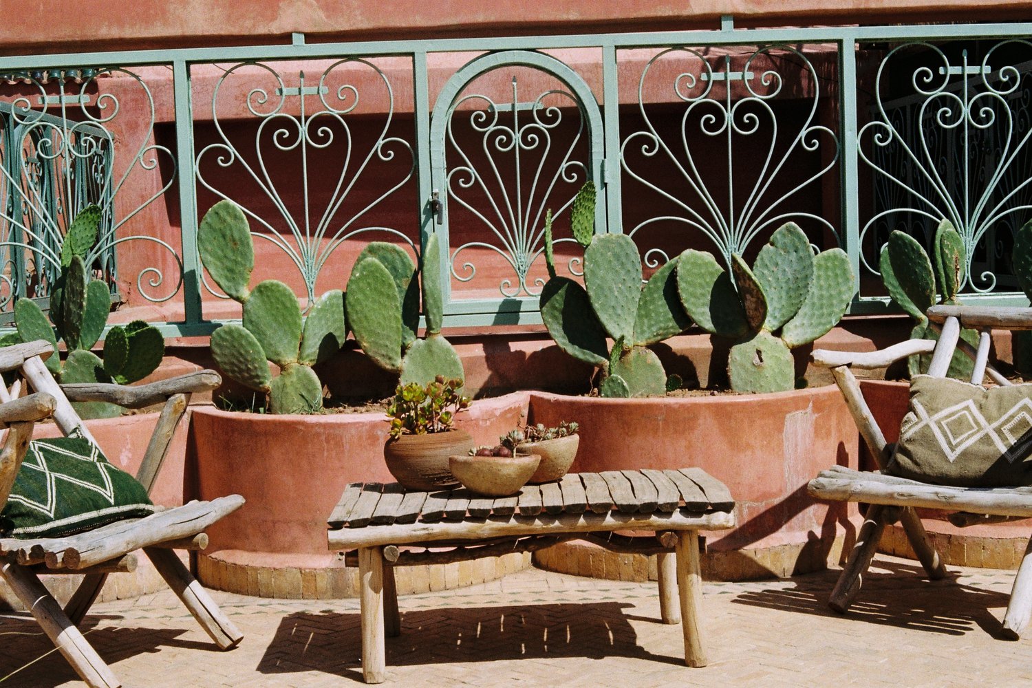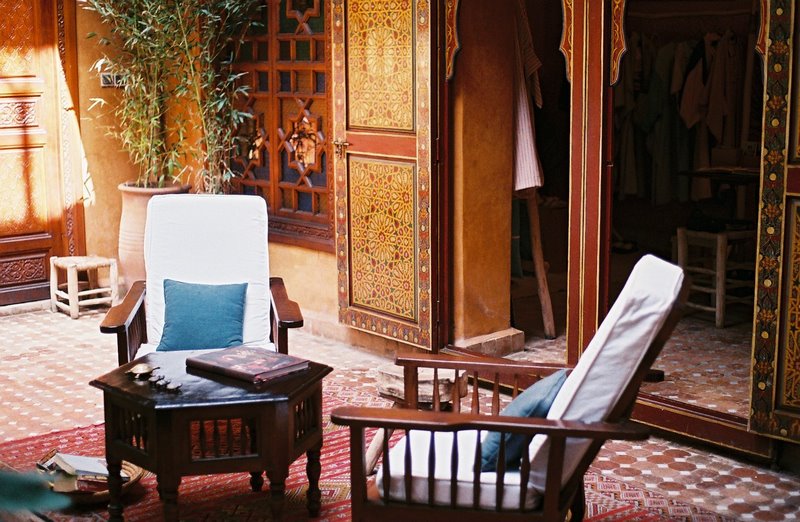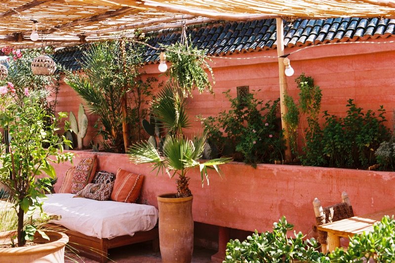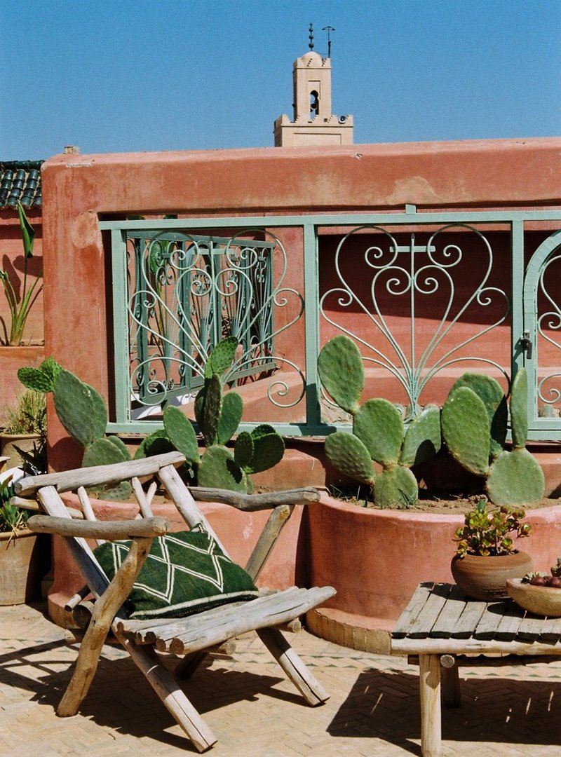 Como es característico en los riads, este pequeño hotel gira en torno a dos patios: un gran espacio público lleno de árboles frutales y una fuente de mármol en el centro; y un pequeño patio privado donde se congregaron las mujeres de la casa y que ahora se ha convertido en una encantadora cocina al aire libre. Sus propietarios, Cyrielle y Julien, han trabajado arduamente para conservar la autenticidad artesanal de su histórica casa en la medina, donde han instalado 5 habitaciones, sencillas pero llenas de encanto. El patio principal es un ejemplo de artesanía de época. Ricos acabados y muchísimo embrujo, claro que, el patio-jardín creado en la azotea no tiene tampoco desperdicio.