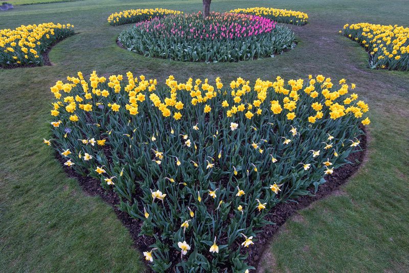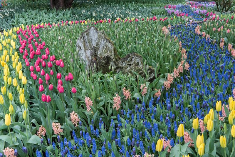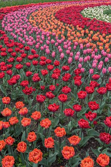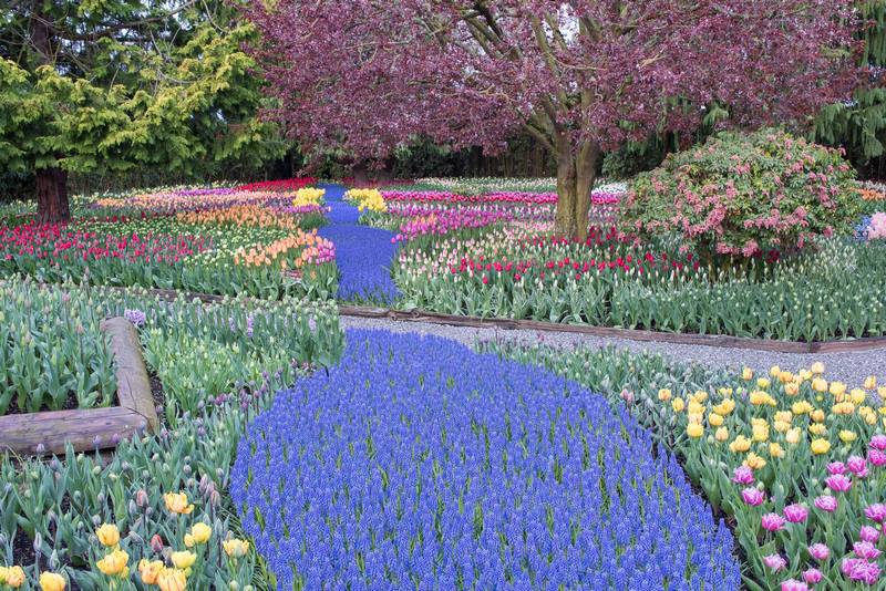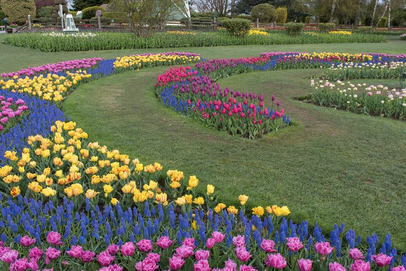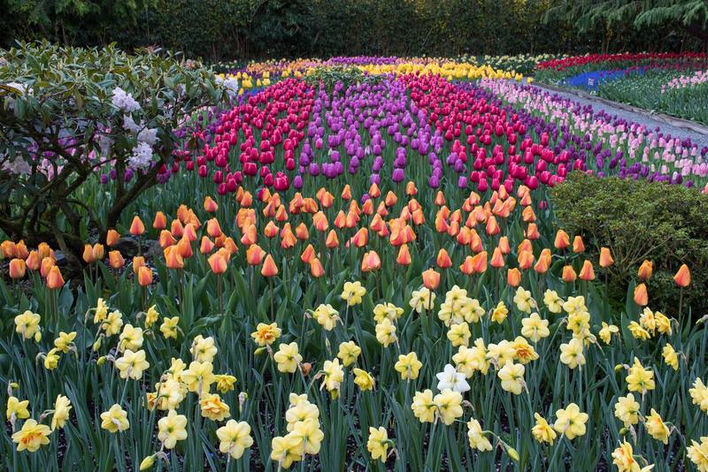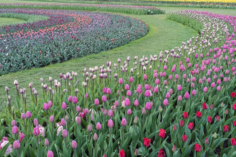 Pero ese festival no solamente ofrece la posibilidad de conocer los campos de cultivo. El atractivo aumenta con los jardines que se diseñan para dar el toque festivo a ese evento anual. Al más puro estilo Keukenhof, son jardines que, como es lógico, tienen a los tulipanes como centro de atención.
