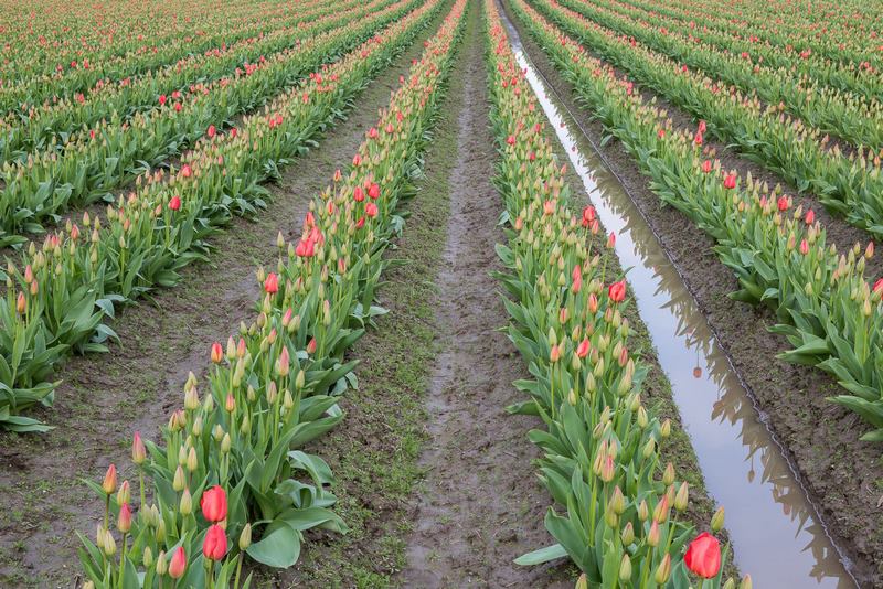 Hoy en día, la superficie de cultivo de esa granja está formada por 200 hectáreas de narcisos, 140 ha de tulipanes y 60 ha de iris. Miles de hermosas floraciones llenan sus campos con su espectacular color. Hilera tras hilera de flores, que pueden admirarse durante los 30 días del festival, siempre recorriendo los caminos principales, puesto que advierten claramente a sus visitantes que no deben caminar entre dichas hileras.