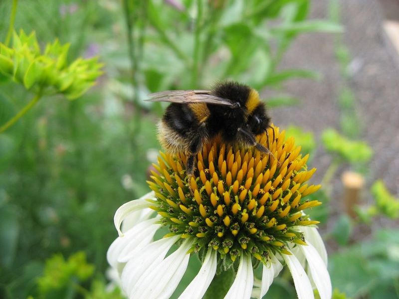 No tienen colmenas, tiene abejas y abejorros solitarios silvestres, porque opina que su hábito de zumbar dentro de las flores las convierte en mejores polinizadores.