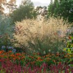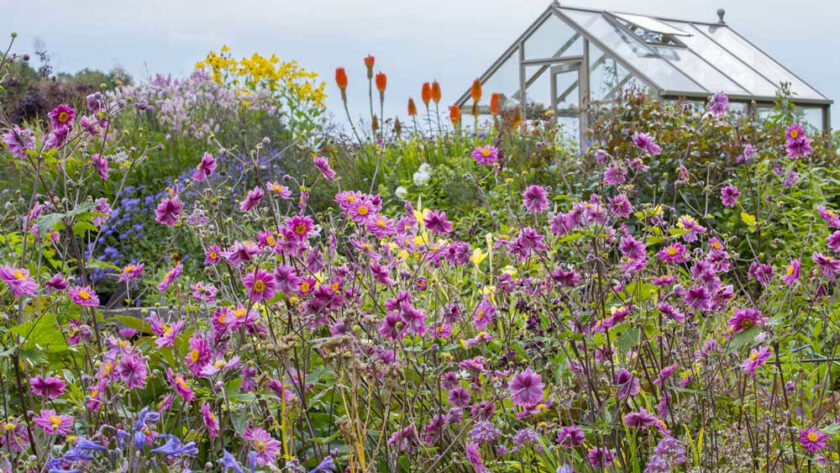 Val Bourne diseñó el jardín para que tuviera algo de interés durante todo el año. Además del jardín con bulbos de flor de primavera, creó parterres de verano con rosas, peonías, phlox y lavanda cerca de la cabaña. Una bordura otoñal de plantas vivaces de tallo rígido y gramíneas ornamentales rodean la casa de verano. Las bolas de boj son las encargadas de tomar el centro del escenario en invierno.