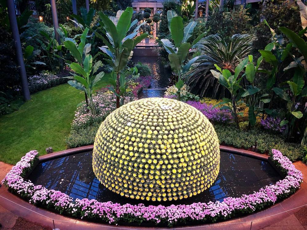 Ahora, las colecciones permanentes del East Conservatory, convertido en un jardín interior, brindan un telón de fondo para exhibiciones de temporada que cubren este jardín con una paleta de colores en constante cambio. En esta ocasión, esa paleta la ofrece la exhibición de crisantemos. El sonido y movimiento en ese jardín interior lo aporta una serpenteante fuente de agua central compuesta de cascadas, piscinas y chorros.