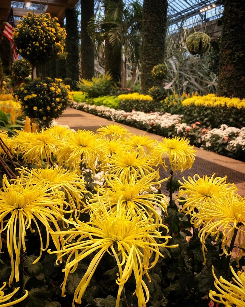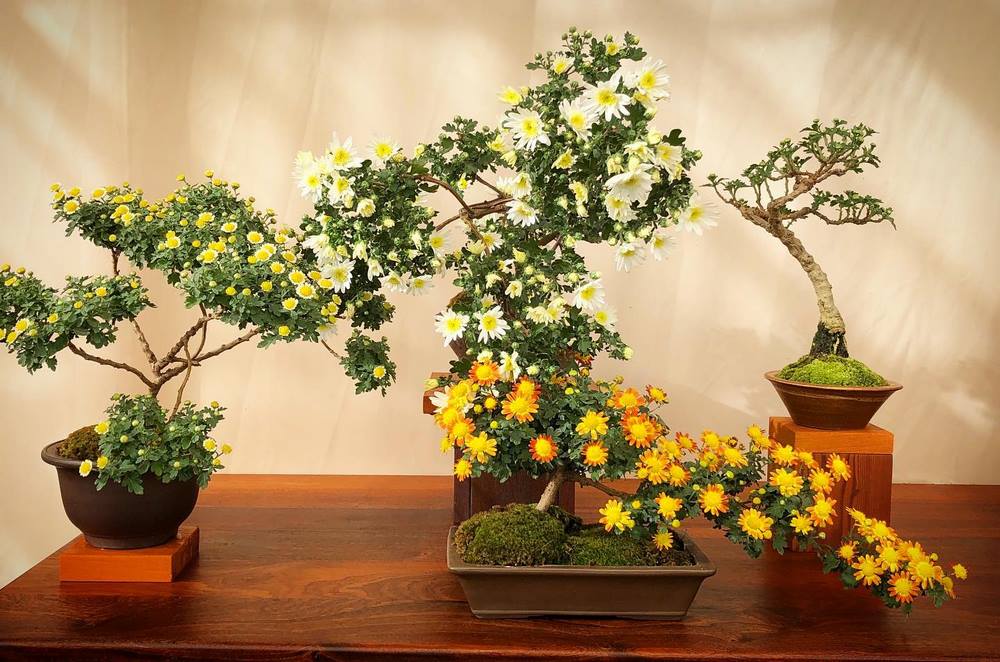 Los cultivadores expertos entrenan los crisantemos en plantas de un solo tallo con una enorme flor individual. También se muestran formas en cascada que cubren las columnas; formas topiarias con diferentes diseños y tamaños, y, por supuesto, el impresionante crisantemo Thousand Bloom antes mencionado.