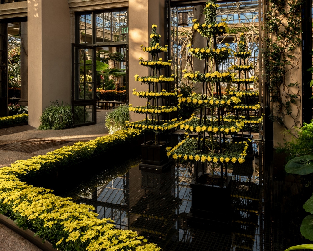 Pirámides de cristantemos en el East Conservatory de Longwood Gardens