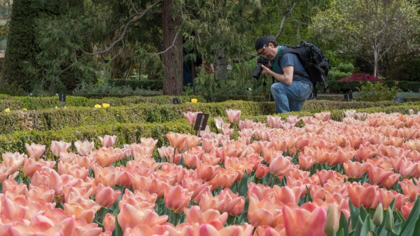 En la Terraza de los Cuadros del Real Jardín Botánico, unos metros más allá de la puerta principal, se puede apreciar desde hace un par de semanas el espectáculo multicolor que se repite cada año por estas fechas. En 2018 se calcula que visitaron los tulipanes unas 50.000 personas en unos 21 días de floración.