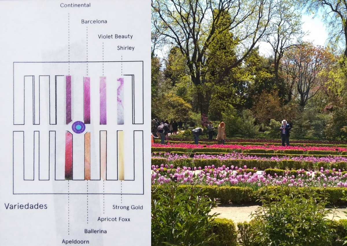 Cultivariedades de tulipanes en los 8 «peines» del «Cuadro 4» del Real Jardín Botánico, Madrid •• © RJB-CSIC