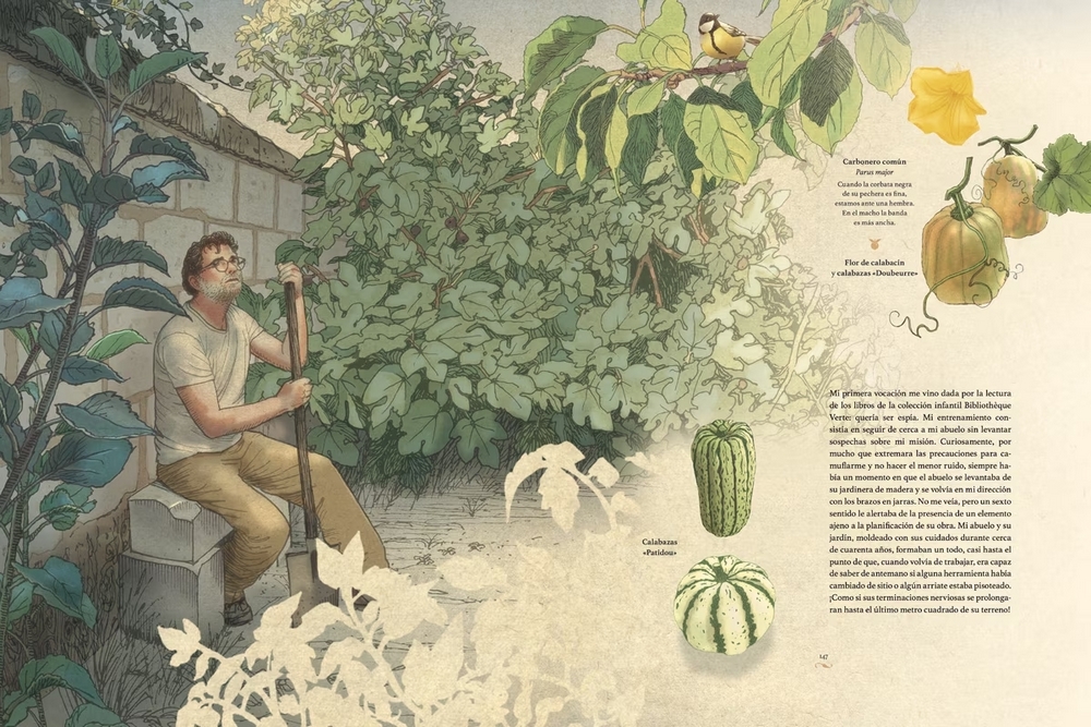 Esa mirada más cercana a su propio entorno le llevo a este aventurero autor e ilustrador a observar con una mirada atenta su propio jardín familiar de 200 años de antigüedad ubicado en la región del Loira, Francia.