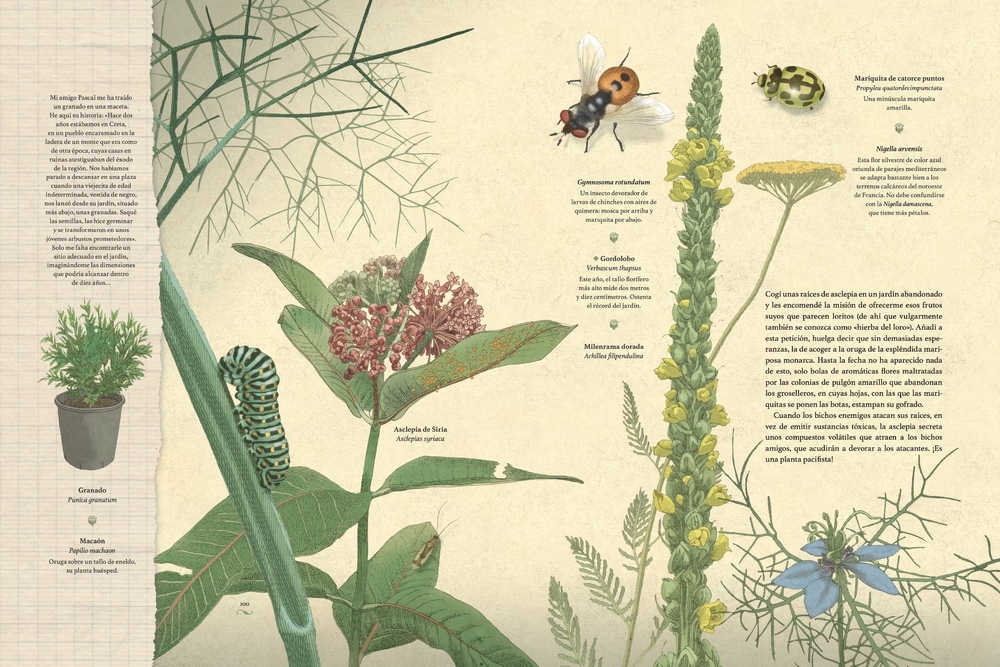 No me cansaré de recomendar este hermoso libro, un diario naturalista repleto de maravillosas ilustraciones, con textos llenos de rigor y buenos toques de humor, en el que el autor nos invita a pasar de una página a otra, saltando de día de día; de flor en flor; y de bicho en bicho, todos ellos muy vivientes, por cierto. No querrás salir de ese jardín nunca.