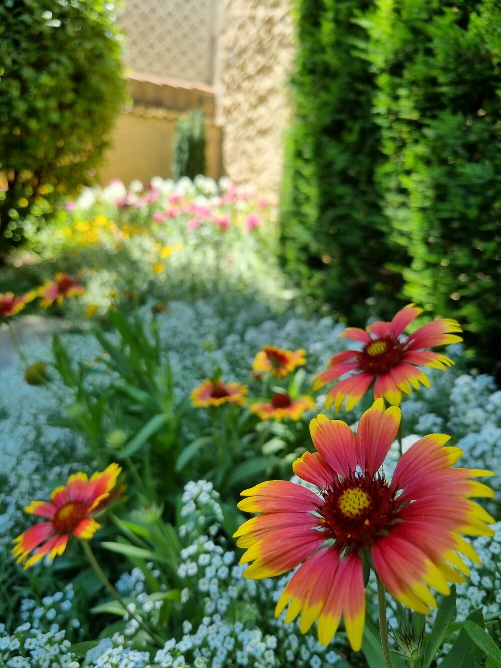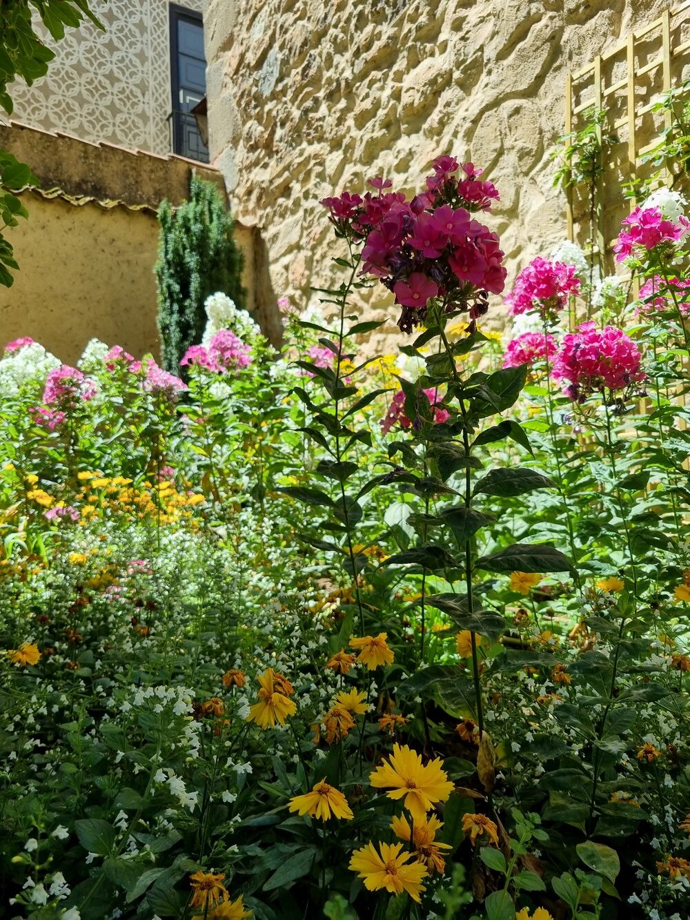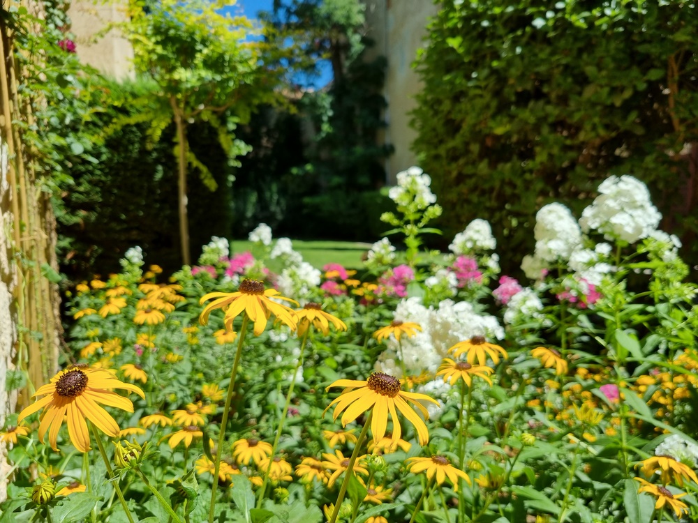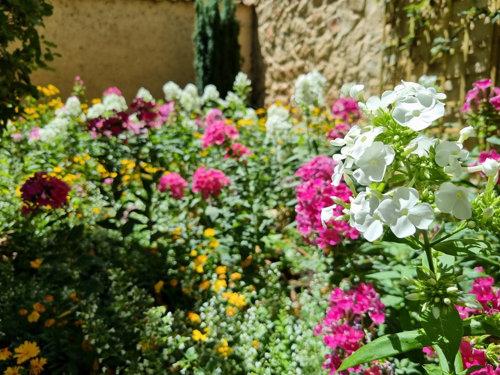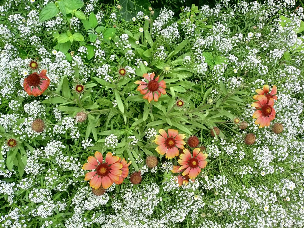 En la zona soleada se ha plantado Rudbeckia hirta, Gaillardia ‘Burgunder’, Lobularia maritima, Phlox paniculata, Calamintha nepeta y Coreopsis grandiflora ‘Early Sunrise’, entre otras especies. También hubo una etapa en el jardín de Vicente, comenta, en la que predominaban las flores naranjas de Hemerocallis, que se han incluido en el esquema de plantación.